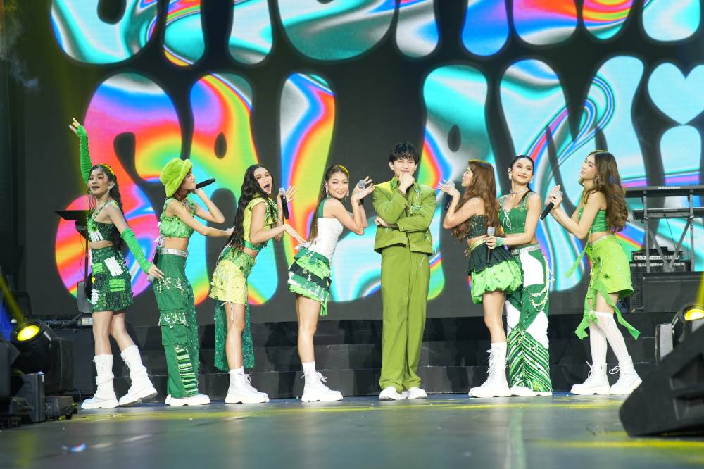 Amid an eruption of cheers, Justin made his way, front and center, joining Aiah, Colet, Gwen, Jhoanna, Maloi, Sheena and Stacey (Mikha was sidelined with an injury). Without missing a beat, he pulled off every cute dance step with the biggest, giddiest smile on his face.