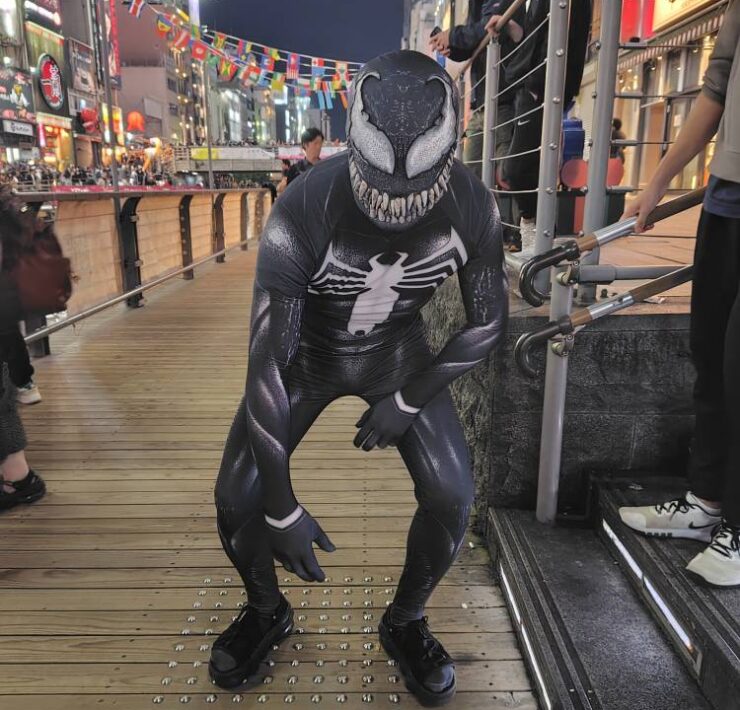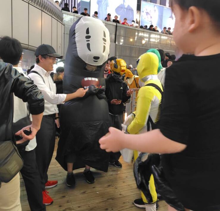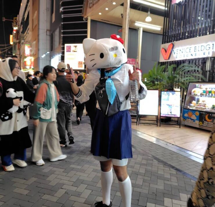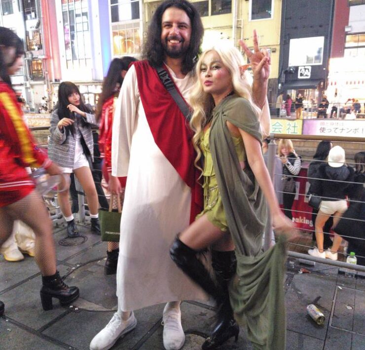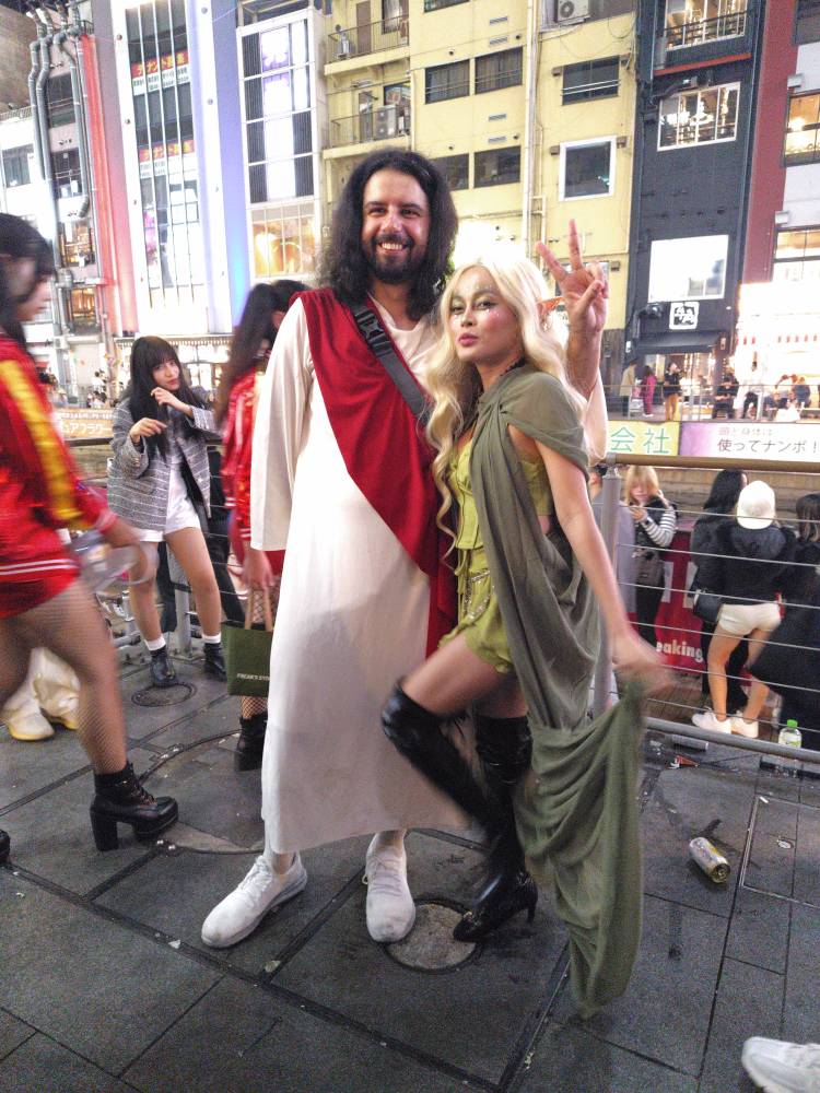 The days leading up to the holiday that’s been gaining traction in Japan already saw a trickling of costumed carousers in the area, but nothing like the horde of colorful characters—from lore, anime, and video games to Hollywood, the news, even the Bible, plus cross-dressers and sexy uniforms—that flooded nearby streets, bridges, parks, arcades, and restaurants.