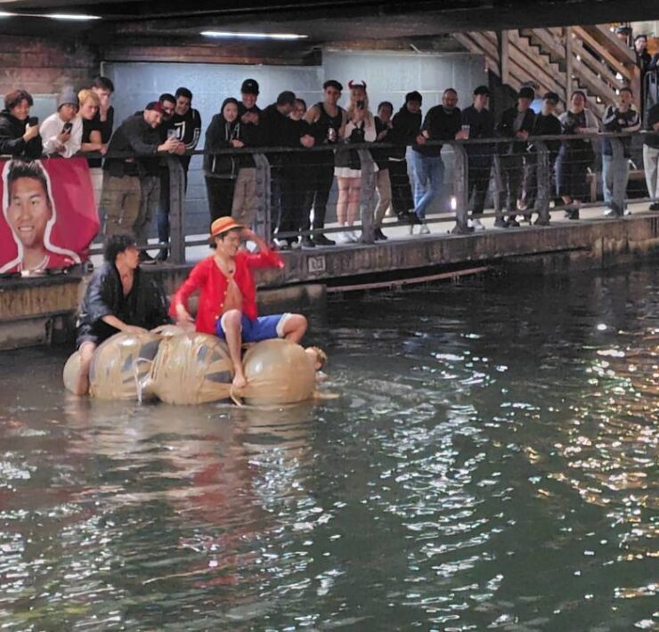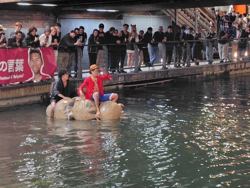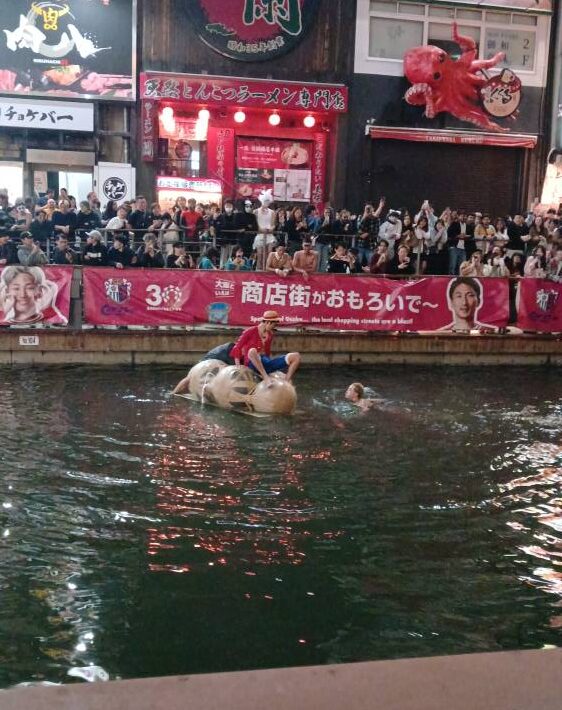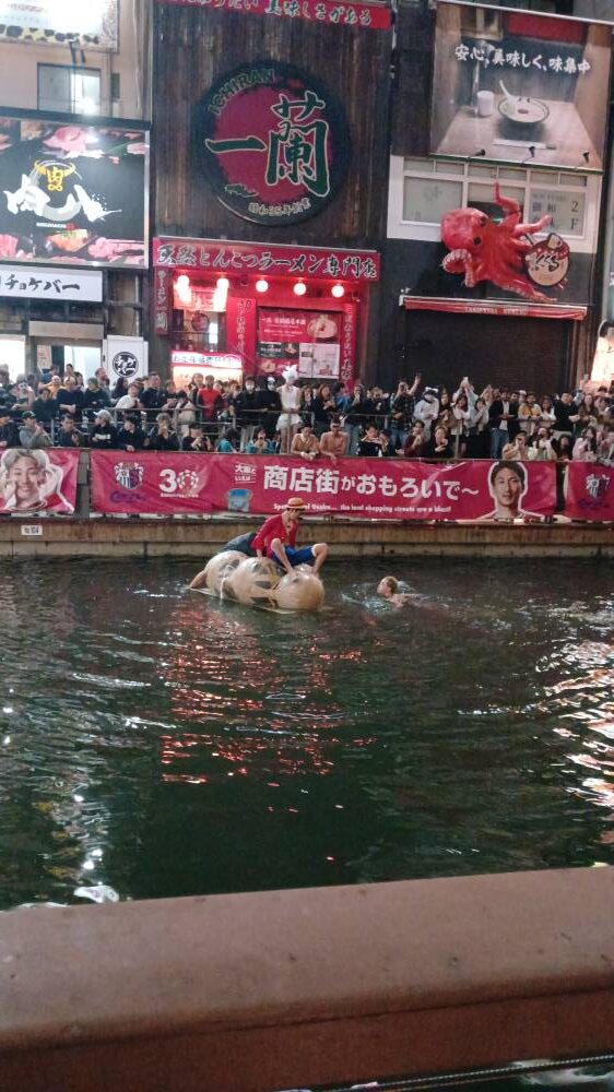 Around 8:30 p.m., the police also began blocking Dotonbori Bridge, thinning the crowd and eventually clearing it. But that didn’t stop the revelers from having their fun.