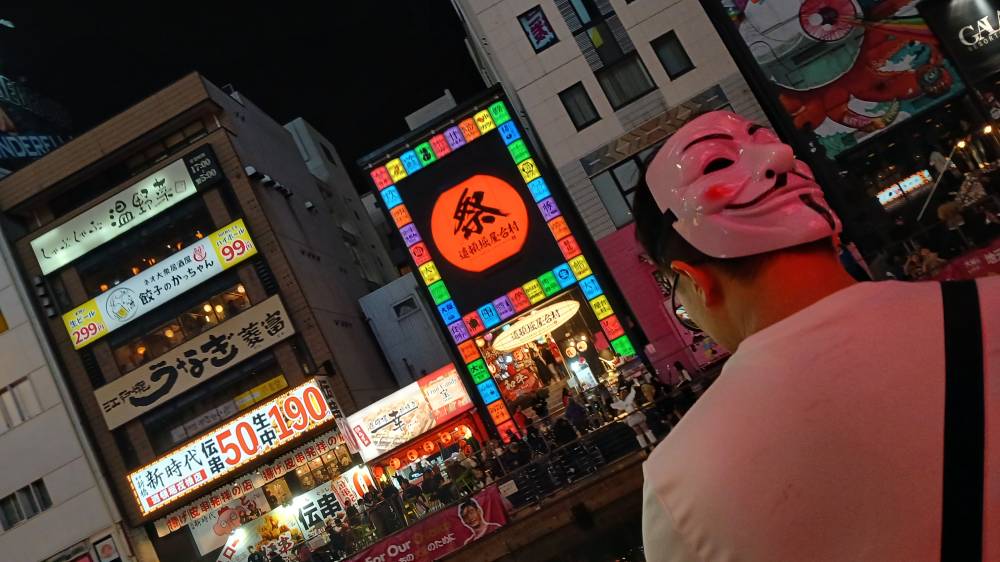 OSAKA—With past favorite Halloween hangouts in Shibuya and Shinjuku, Tokyo, now with strict rules against congregating to prevent street drinking (crowd-drawer Hachiko was even put on hiatus and covered up this year), Osaka’s own tourist magnet, Dotonbori in Minami district, became the definitive place to be for merrymakers on Oct. 31.
