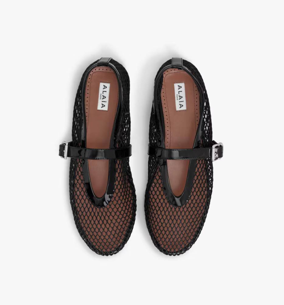 Signature Alaïa ballet flats take their cue from classical Japanese footwear, reimagined in a fishnet texture that’s both delicate and daring. The see-through mesh adds an edge to the otherwise sweet silhouette, making them ideal for women who love a little contrast in their looks.