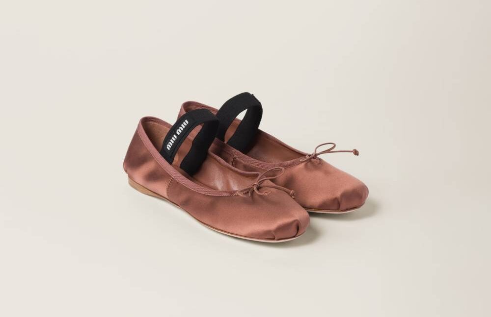 Miu Miu: Satin Ballerinas in Cocoa Brown