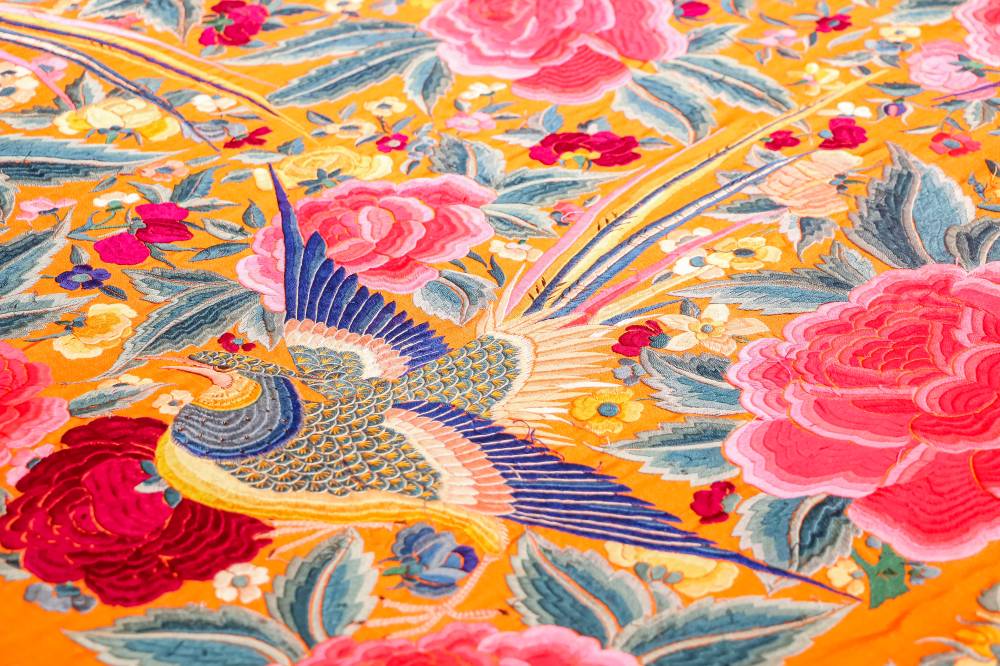 The pieces on display at the Ayala Museum carry images that remain familiar today. Stitched onto the shawls are subjects that range from the timeless attraction of flora to the charm of flitting hummingbirds.