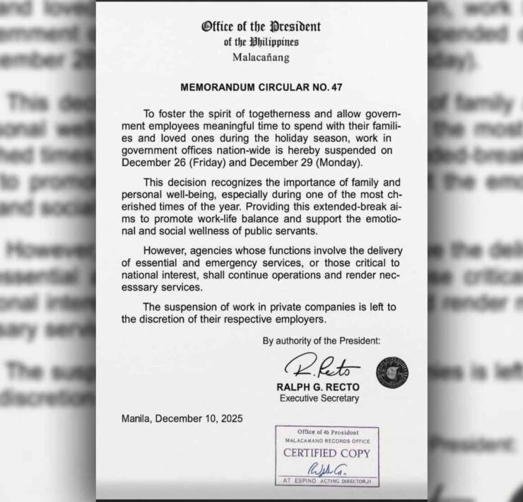 Recto: Memo declaring work suspension on Dec. 26, 29 fake