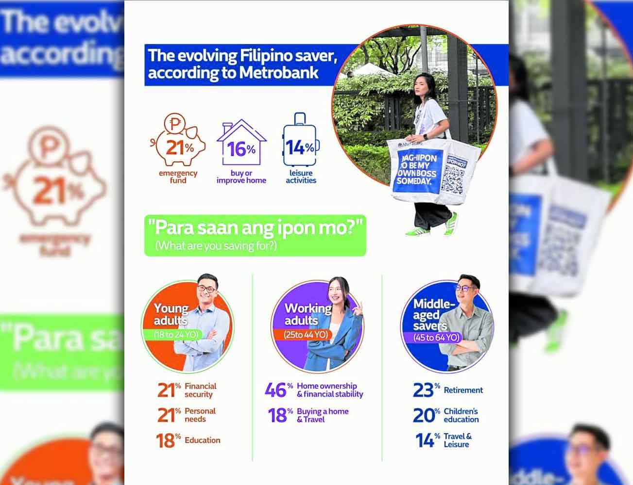 This, Metrobank says, aligns with the Bangko Sentral ng Pilipinas (BSP) 2021 Financial Inclusion Survey, which showed that roughly four in five savers allocate funds for emergencies.