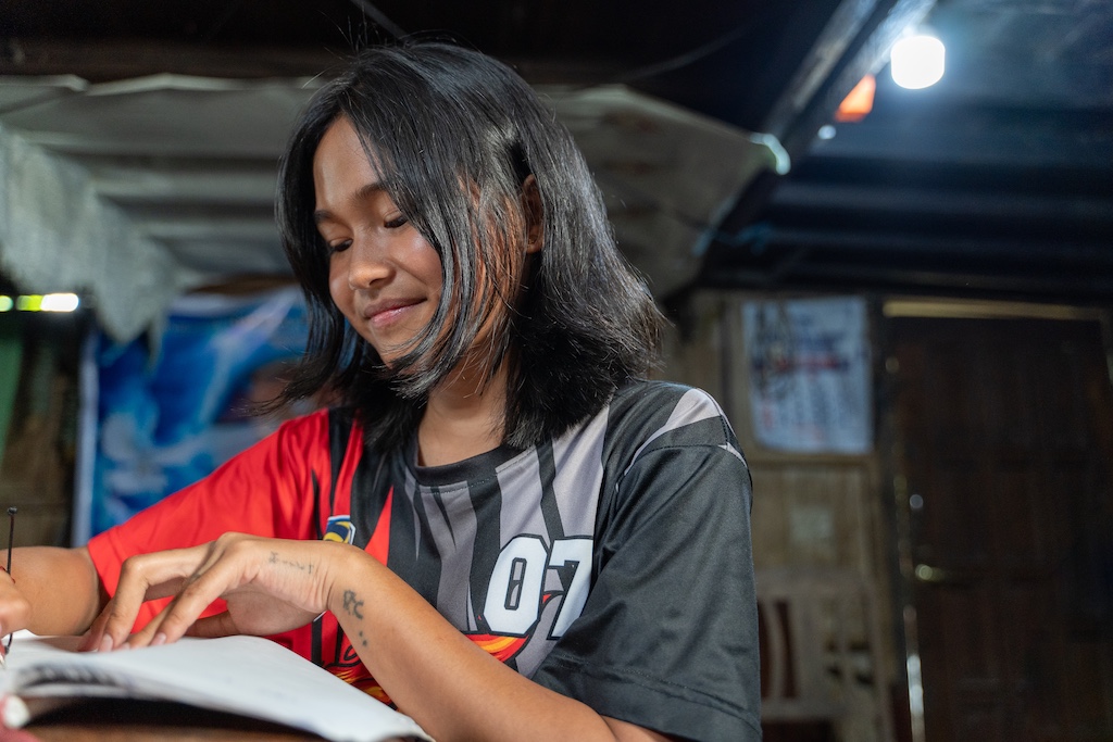Young student Mitch Balbuena used to do her homework using a gas lamp for illumination up until the sitio electrification program brought by Davao Light finally reached their home.
