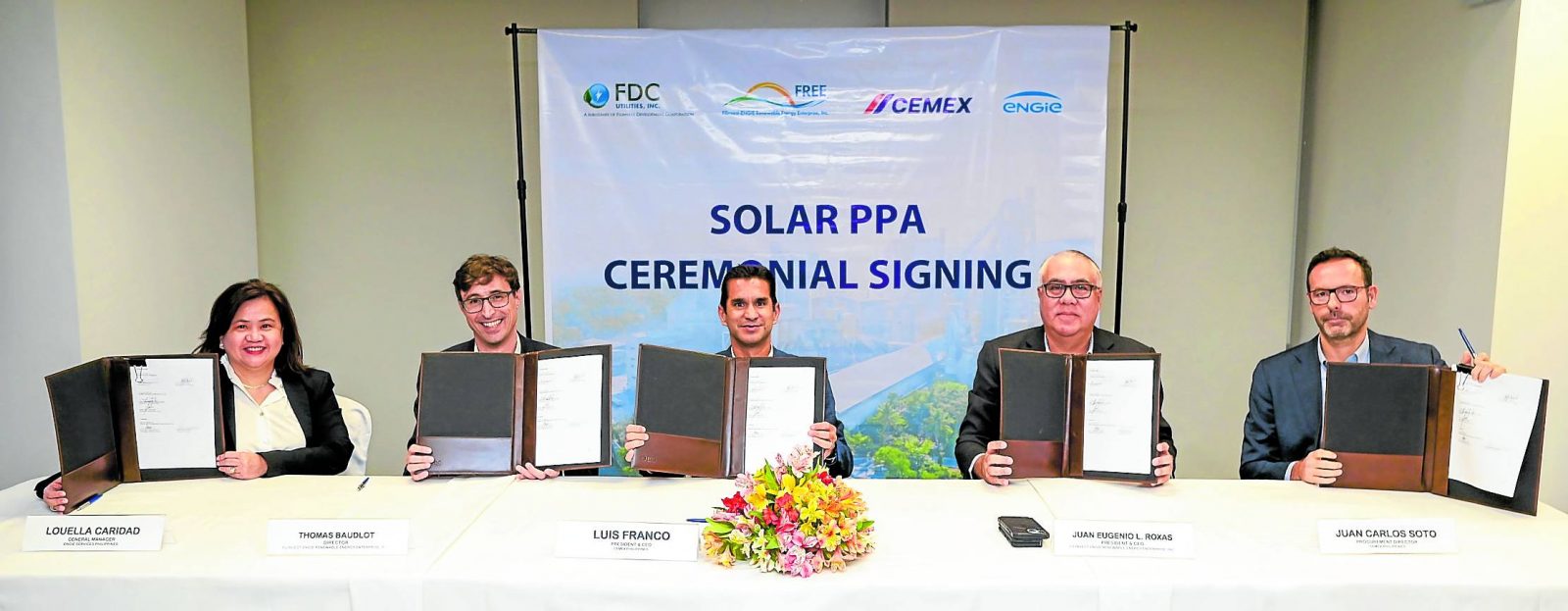 GREEN ENERGY DEAL Cemex Philippines, a leading cement producer in the country, has signed a contract with Filinvest-ENGIE Renewable Energy Enterprise Inc. (FREE), to develop a 10-megawatt ground-mounted solar system in Cemex’s facility in Apo Cement Plant in the city of Naga, Cebu. This solar energy project is expected to save over 10,000 metric tons of carbon dioxide per year. FREE is a joint venture company of FDC Utilities Inc., the power utility arm of diversified conglomerate Filinvest Development Corp. and ENGIE Services Philippines, the local division of ENGIE, a global leader in low-carbon energy and services. In addition, Cemex and ENGIE have entered into a memorandum of understanding to explore the implementation of various renewable energy and energy efficiency solutions for Cemex’s facilities in Naga, Cebu, to help the company advance its sustainability goals. Juan Eugenio Roxas, president and CEO of FDCUI and subsidiaries, including FREE, said FREE and Cemex are poised to set new benchmarks in clean energy integration, signaling a transformative alliance that reflects a collective dedication to environmental stewardship and forward-thinking business practices. The APO Cement solar project, one of the biggest solar projects in Cebu province, is the first collaboration between the companies and is part of Cemex’s global Future in Action program.
