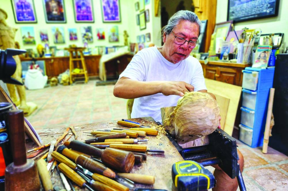 Layug, 64, has lost track of how many rebulto (in-the-round or three-dimensional statues), relievo (bas relief) and paintings he has made since he finished his first commissioned project, a wood relief of a horse-mounted Santiago Matamoros (St. James the Moor-slayer) in Intramuros, in 1981.