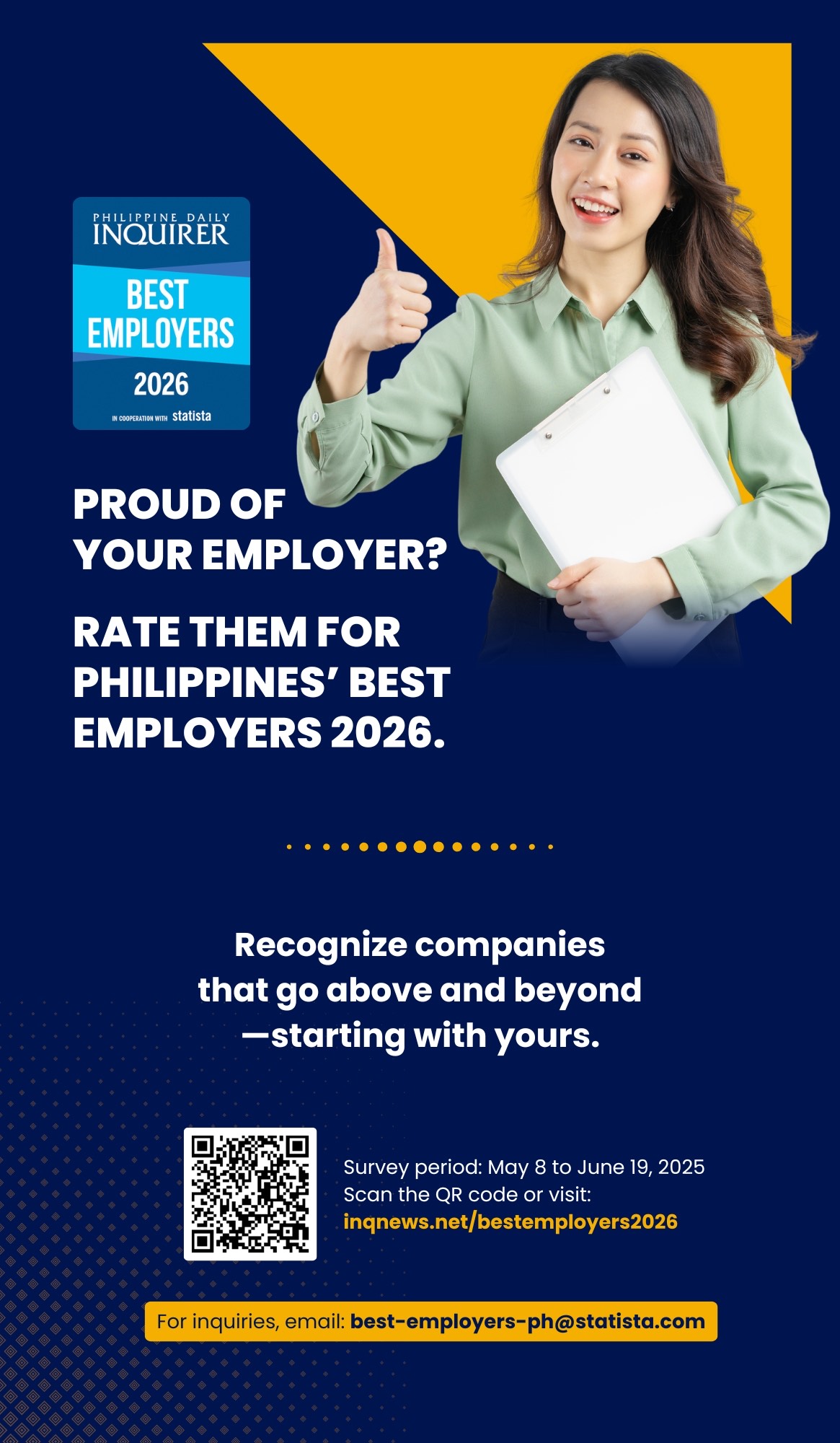 The survey, which starts May 8 and ends June 19, will identify the 2026 Philippines’ Best Employers, a search jointly undertaken by the Philippine Daily Inquirer, in collaboration with German market research firm Statista, Inc.
