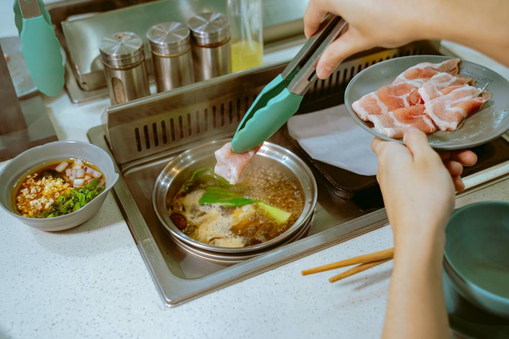Accompanying broths include your choice of mala, plain tonkotsu, suan la (hot sour), or tomato soup, while a sauce-making station—loaded with aromatics, different sauces, and condiments—invites you to mix, match, and create unlimited options. And speaking of unlimited, its unlimited setup invites you to grill, savor, and slurp every bite there at your own pace.