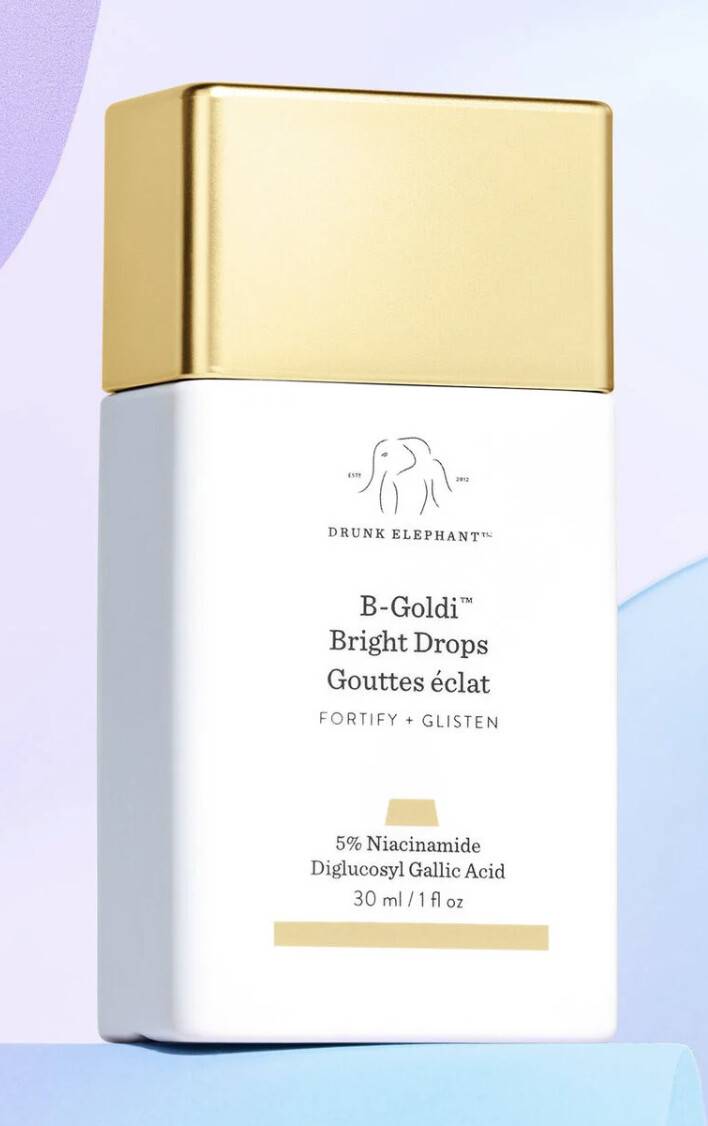 For those who prefer their glow understated, or are simply not into wearing too much makeup, illuminating drops offer the most effortless way to tap into gold’s light-reflecting effect. Drunk Elephant’s B-Goldi™ Bright Illuminating Drops with 5 percent Niacinamide is designed to enhance skin rather than sit on top of it.