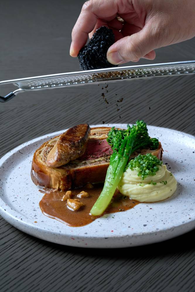 Then fire. This is the heart of the meal. A Mulwarra tenderloin beef Wellington—rich, composed, deeply satisfying. The beef is exceptionally tender. A touch of foie and fresh truffles are available for those who wish to take a more indulgent path.