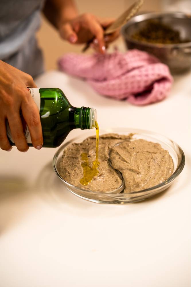 When cooked until tender, monggo becomes soft and creamy—ideal for blending into a smooth paste. Like chickpeas, they hold structure while still breaking down easily. There are two kinds of monggo—monggo kintab, or shiny—which stays more firm even with soaking and boiling, and monggo labo, which is softer and murkier. For this hummus dish, look for the ‘labo’ variety, as you will want it as creamy as possible.