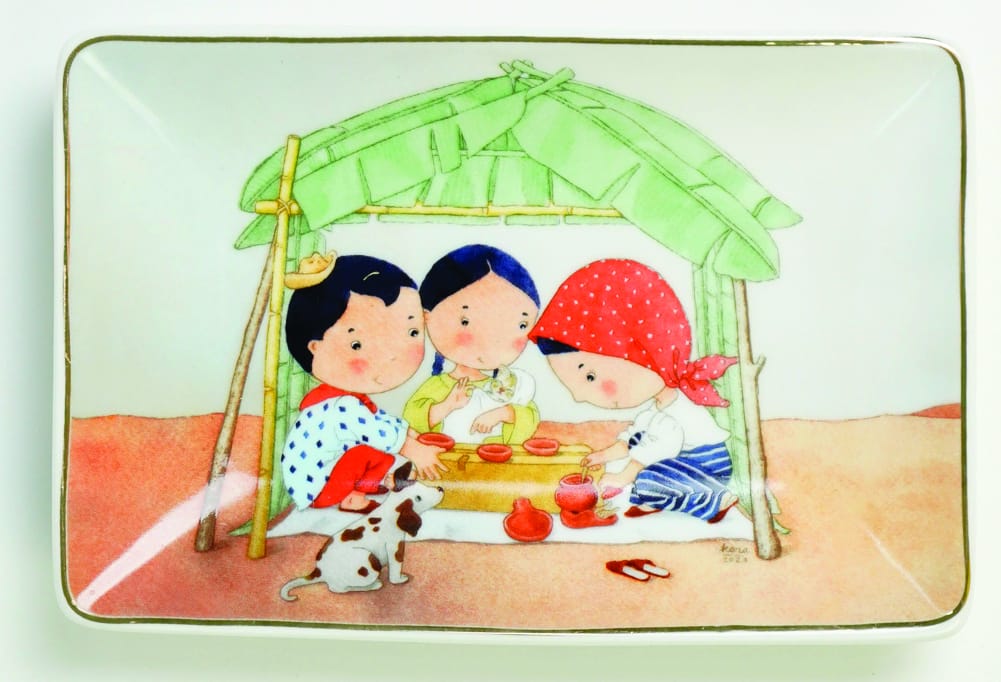 The Kora Albano trinket trays depict everyday Filipino life through two scenes: Bahay Bahayan, inspired by childhood play, and The Bangka, which celebrates coastal living and the native boat central to many communities.
