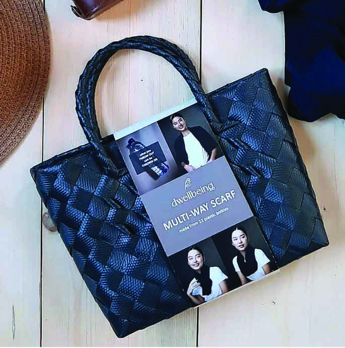 Each scarf repurposes 12 plastic bottles and is sewn by the women of GROW, the livelihood program of Project PEARLS, which uplifts vulnerable communities across the Philippines.