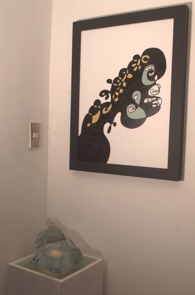 Mercifully, the Cab Nov painting (“Mental Landscape: Sky High Visions”) that hangs above the cats’ favorite sofa has been left unscathed. In fact, the cats seem to know not to mess with the artworks that pepper the interior of Casa Lucas—not even those within clawing reach, like Ambie Abaño’s floor-to-ceiling “Lalaki,” whose bare, headless figure stands at the head of the wooden dining table.