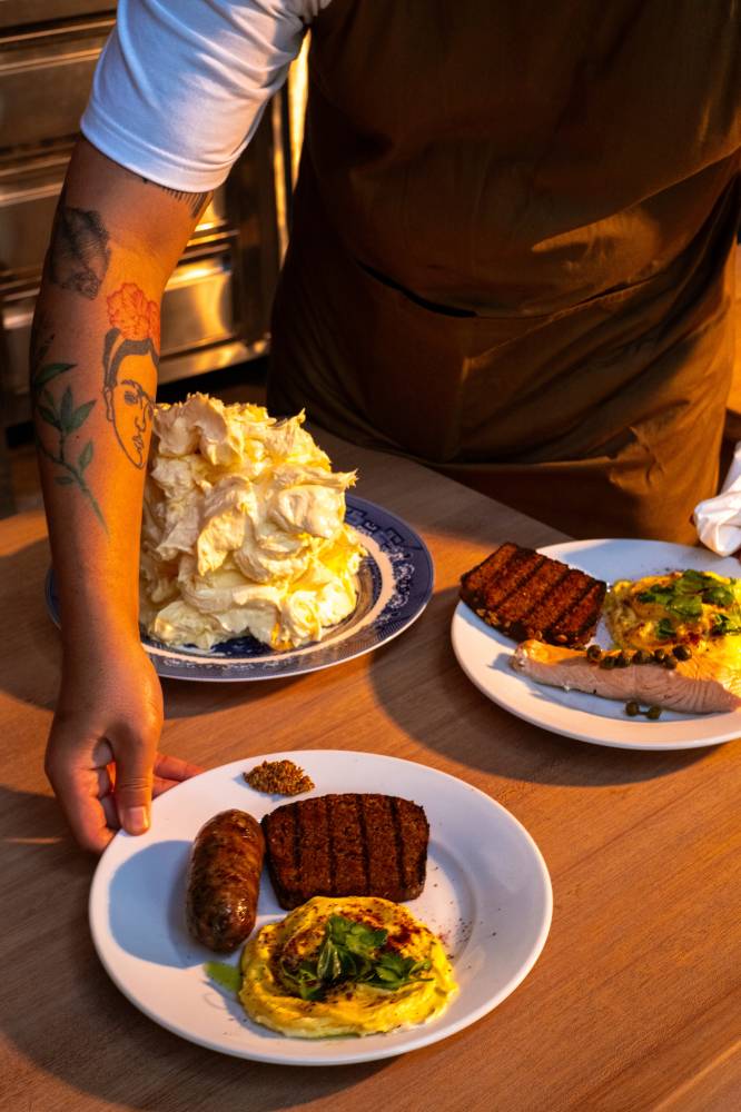 Not one to be missed is Ibañez’s take on shakshuka that uses nduja, a spiced sausage—and the quintessential elements of runny egg, yogurt, cherry tomatoes, and a spice blend of za’atar. It’s the kind that invites mopping up with brown bread in messy, good fun.