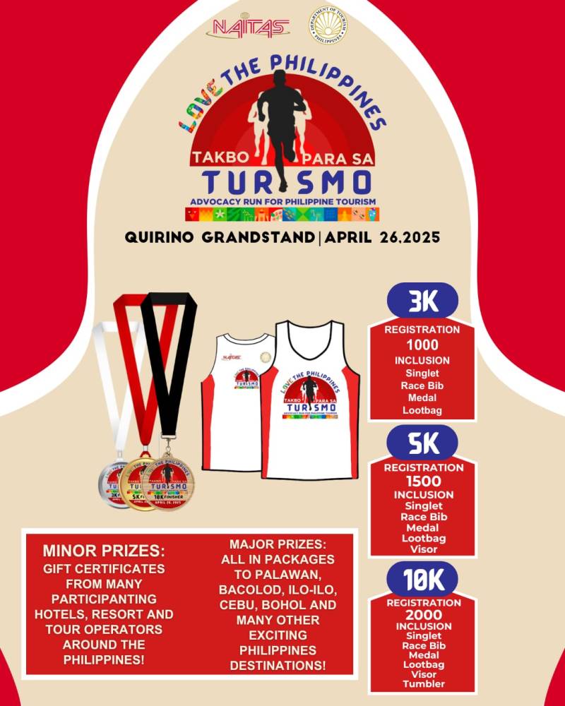 The National Association of Independent Travel Agencies (Naitas) has partnered with the Department of Tourism (DOT) for “Takbo Para sa Turismo,” a unique fun run that celebrates the Philippines’ beauty while highlighting tourism’s important contribution to the company’s economy.
