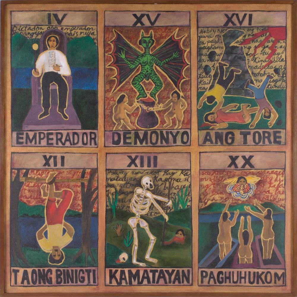 Brenda Fajardo’s tarot cards, meanwhile, reinterpret a Western system through Filipino mythology, politics, and collective memory, inviting viewers to interact with the cards as living, postcolonial images.