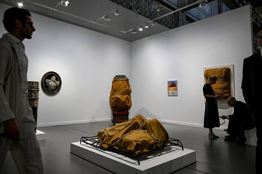 Best known for large-scale works with his French partner Jeanne-Claude, like the wrapping of Paris’ Arc de Triomphe in 2021, Berlin’s Reichstag in 1995 and Pont Neuf in 1985, the Doha fair exhibited smaller wrapped sculptures.
