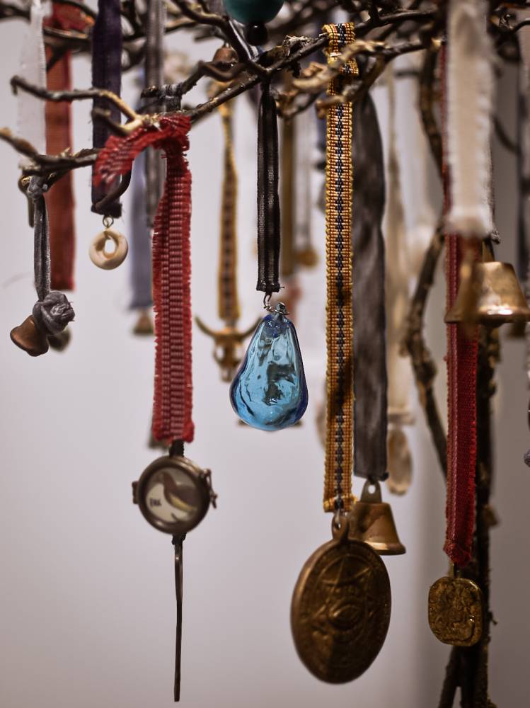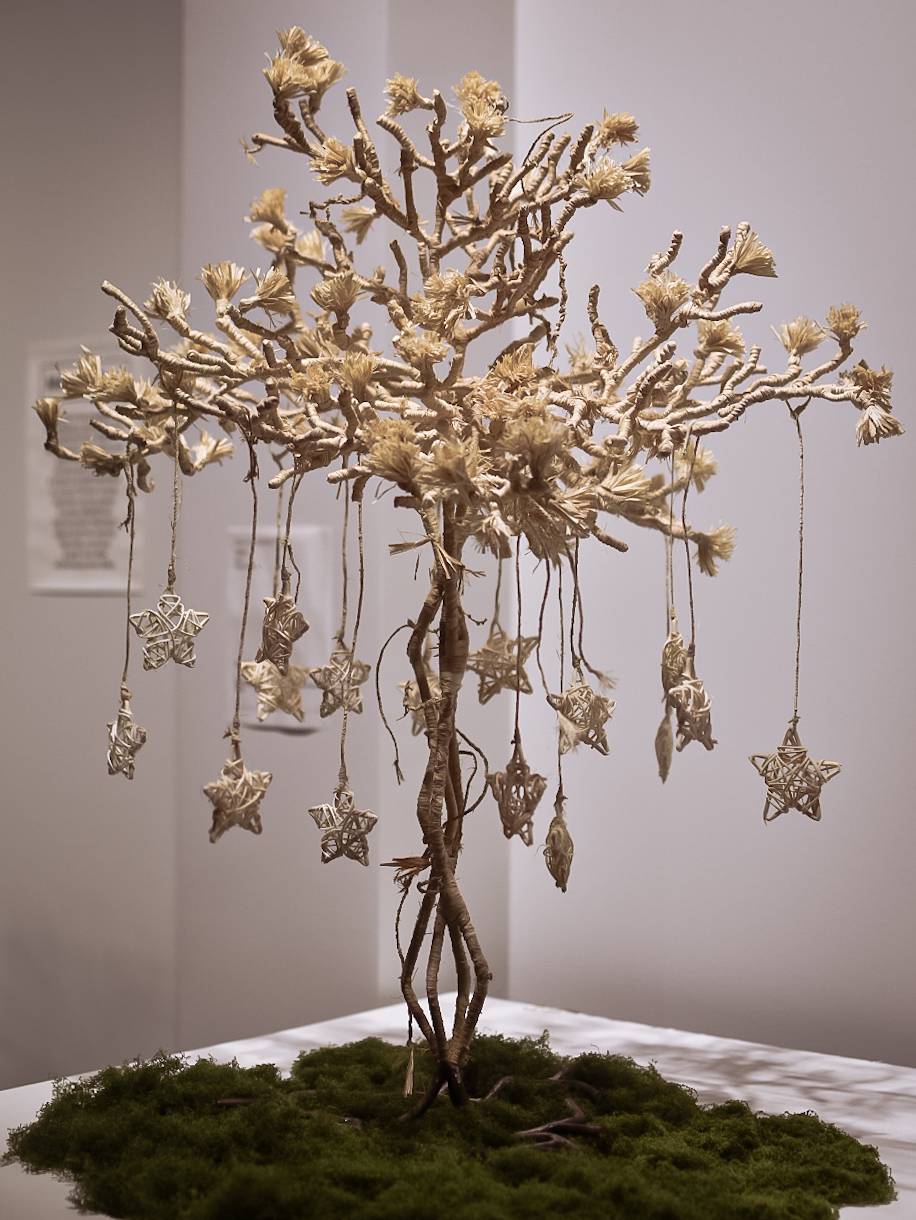 Each of the trees is unique, poetic as well as personal. Next to each tree is not just the label listing materials but also notes on what gave each of the artists peace.