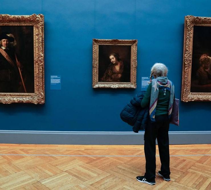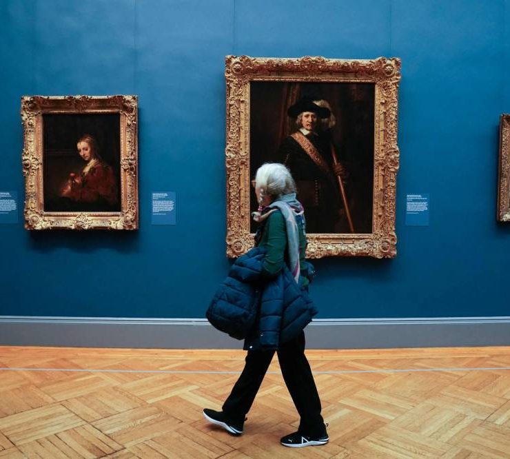 A visitor walks through a gallery exhibiting paintings by Rembrandt during a press preview at The Metropolitan Museum of Art in New York on November 16, 2023. Five centuries of European painting can be seen in a new light starting November 20, thanks to a five-year, $150 million renovation at New York's Metropolitan Museum of Art. The bold redo of the museum's massive wing devoted to masters from the 14th to 19th century includes a range of improvements, including to the section's skylights. (Photo by Bryan R. Smith / AFP)