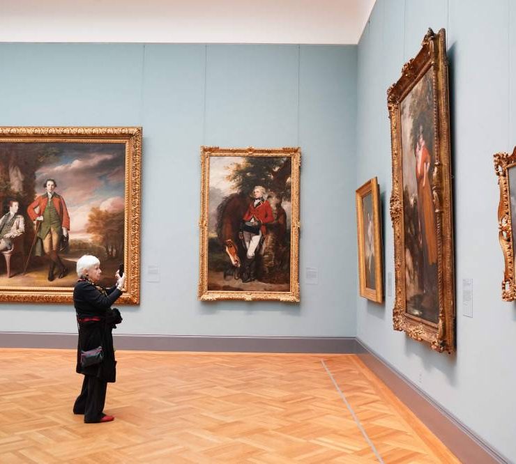 A visitor takes a photo of a painting during a press preview at The Metropolitan Museum of Art in New York on November 16, 2023. Five centuries of European painting can be seen in a new light starting November 20, thanks to a five-year, $150 million renovation at New York's Metropolitan Museum of Art. The bold redo of the museum's massive wing devoted to masters from the 14th to 19th century includes a range of improvements, including to the section's skylights. (Photo by Bryan R. Smith / AFP)