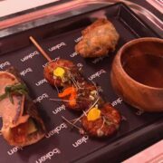First came the Carne Asada Taquito, a beautifully marbled slice of chuck flap, topped with zesty chimichurri and fresh pico de gallo. For contrast, the dish was paired with a Menchi Katsu Nugget, a bite of which revealed a hearty blend of mozzarella and Camembert, combined with luxurious minced Angus chuck eye roll.