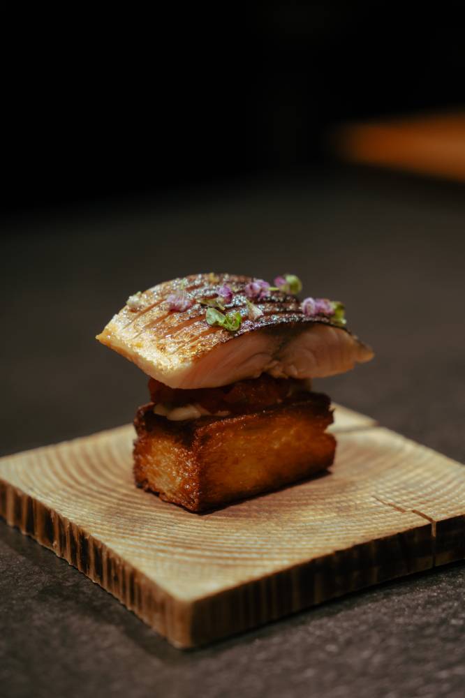 But it works, thanks to the exploration of temperatures and respect for ingredients. “The [primary] inspiration still looks at sushi, but how to highlight the product, how to feature it, and make it really forward,” he says.