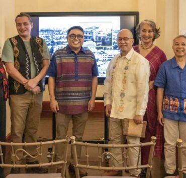 Women have been a strong influence in Barrera’s life. “Mnemosyne” honors his ancestors, blending the image of an Oriental woman holding a fan. Mnemosyne, the goddess of memory and mother of the Muses, serves as a tribute to the creative legacies of his grandmothers. The face resembles his great-grandmother, designer Marina Antonio; the fan symbolizes the elegance of his paternal grandmother Nena; and the graceful pose is inspired by Lulu Coching’s portrait of his maternal grandmother Malu Veloso.