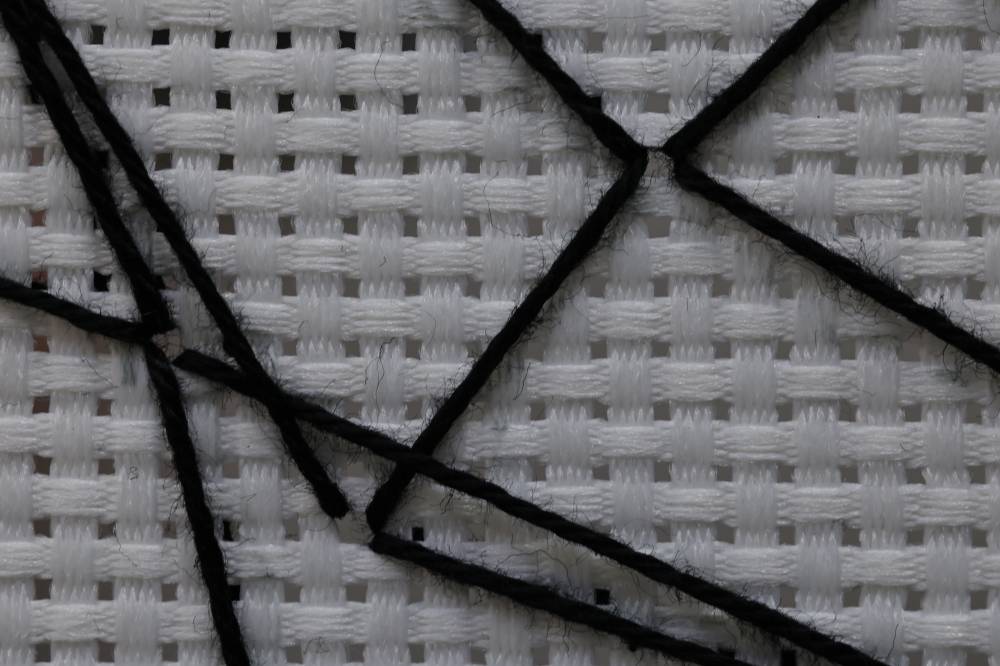 I started using Aida cloth back in 2017, initially using the material to represent the “fabric of spacetime”—ironically so, because the idea was to represent something that was “unseen.” The Aida cloth, which is typically used in cross-stitching, resembled a Cartesian plane, consequently becoming this metaphorical world map.