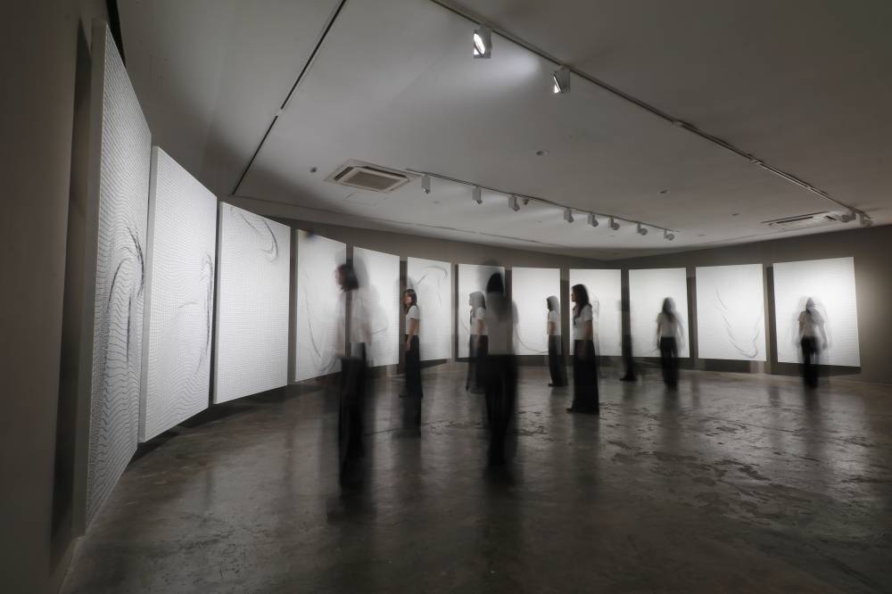 Lee’s solo exhibition “Through” at MO_Space, is a visually riveting inquiry into the intersection of the analog and the digital. It is a series of works that thinks as much as it feels, with a visual language that moves fluently between precision in craftsmanship and conceptual depth—a reflection on how the handmade might still map meaning in a world increasingly drawn in code.