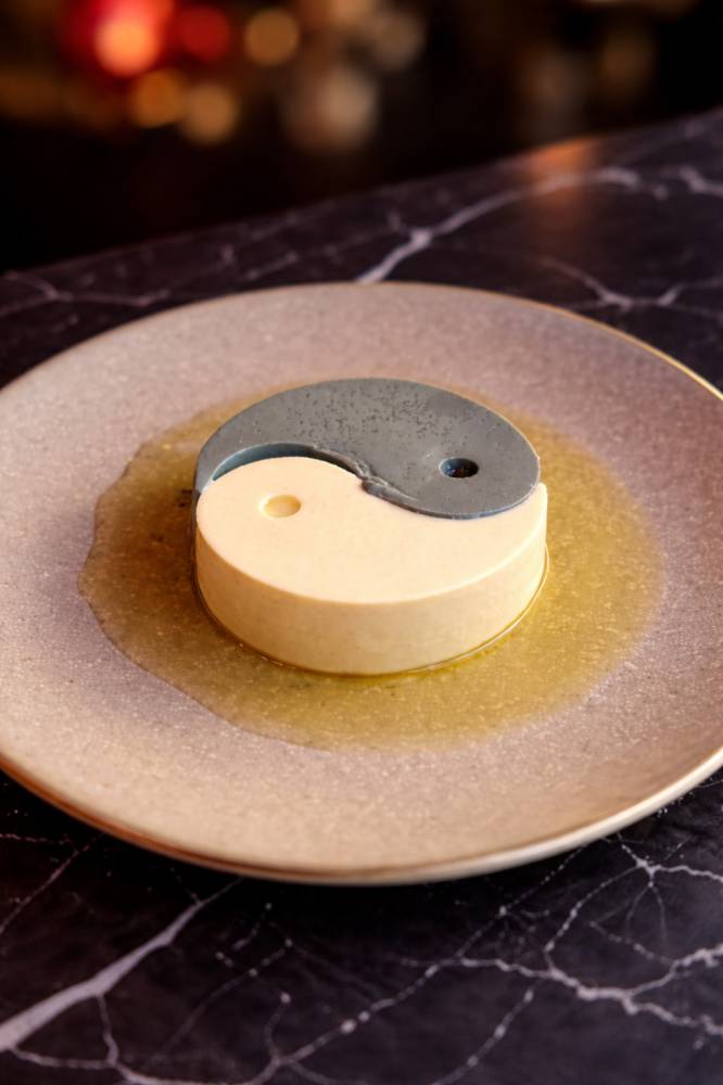 The first floor, Hǎo (the Chinese word for good), is where traditional Chinese cuisine is reimagined—think Xiao Long Bao with the vinegar already inside the dumpling instead of served on the side and shrimp dumplings encased in deep-fried strands that trade off the usual sweet chili sauce for a creamy wasabi mayo. And the highlight: a Yin & Yang dessert made up of black sesame pudding for Yin, and almond for Yang, finished off with a drizzle of sour-sweet passionfruit syrup.