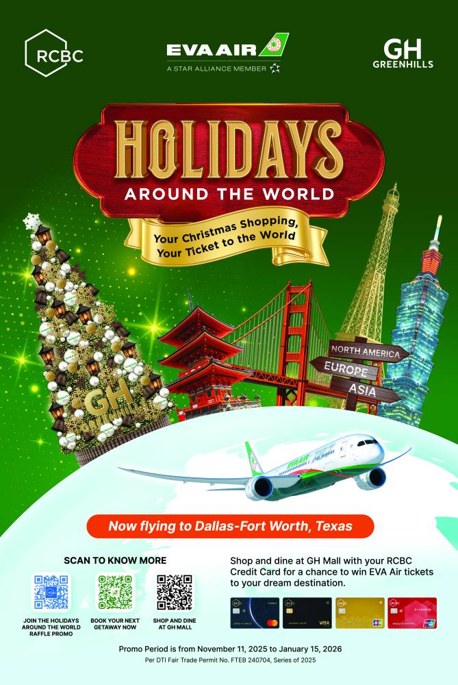 To make the holidays even more exciting, RCBC joins the festivities with Holidays Around the World Raffle Promo, running from November 11, 2025 to January 15, 2026. The promo is open to RCBC credit cardholders who shop or dine at GH Mall during the period, earning raffle entries for a chance to win EVA Air tickets to dream destinations.