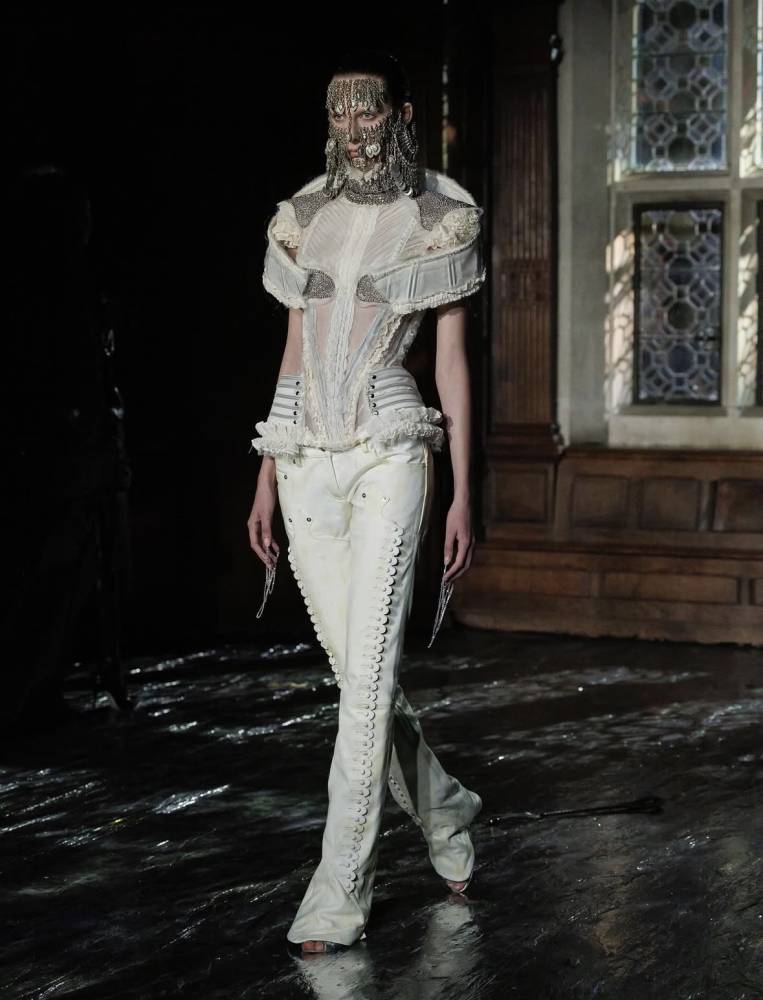 Take, for instance, her SS26 ready‑to‑wear collection, “Cage of Innocence.” It’s a body of work that takes the abstract—freedom, confinement, the heritage of womanhood as both myth and burden—and expresses it through striking techniques and materials. Slashes of alabaster white lace, boned corsetry against leather, sheer chiffon interlaced with hardware and spikes. The collection was widely seen at London Fashion Week and celebrated for its visceral storytelling on the runway.