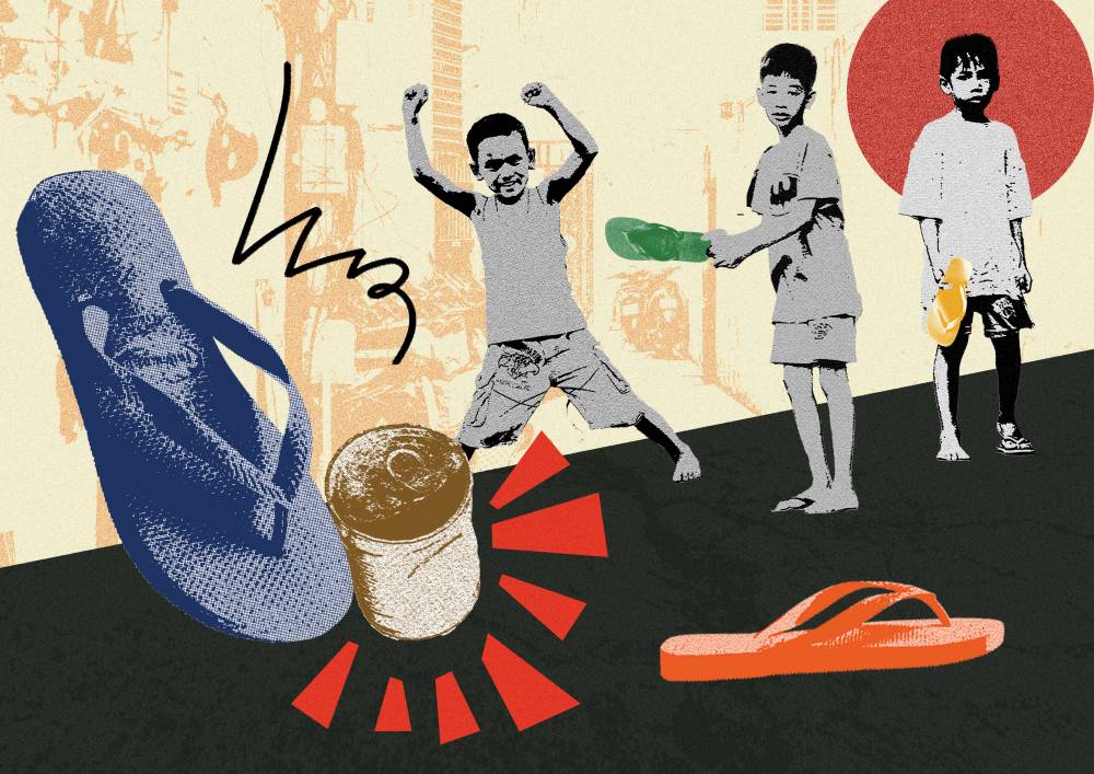 Participants take turns trying to knock down a can, and the “taya” (or “It”) is tasked with putting the target back up when it’s knocked down. Alternatively, the “taya” can also tag other players who are trying to recover their thrown flip-flops to pass the “taya” role.