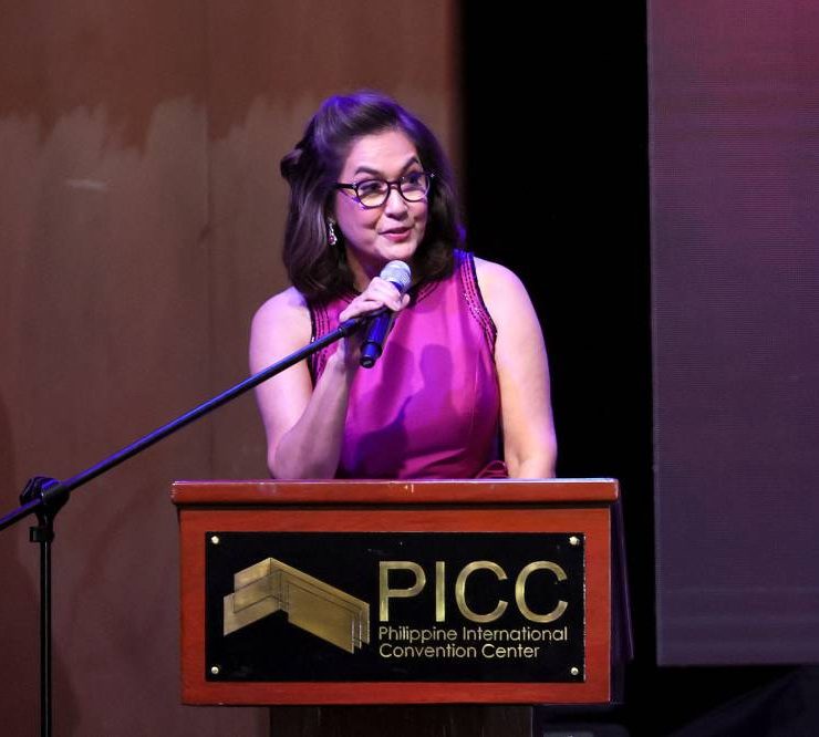 71ST CARLOS PALANCA AWARDS / NOVEMBER 28, 2023 Criselda "Dang" Cecilio - Palanca delivers a speech during the 71st Carlos Palanca Memorial Awards for Literature at the Philippine International Convention Center (PICC) in Pasay City, Monday night, November 27, 2023. INQUIRER PHOTO / GRIG C. MONTEGRANDE