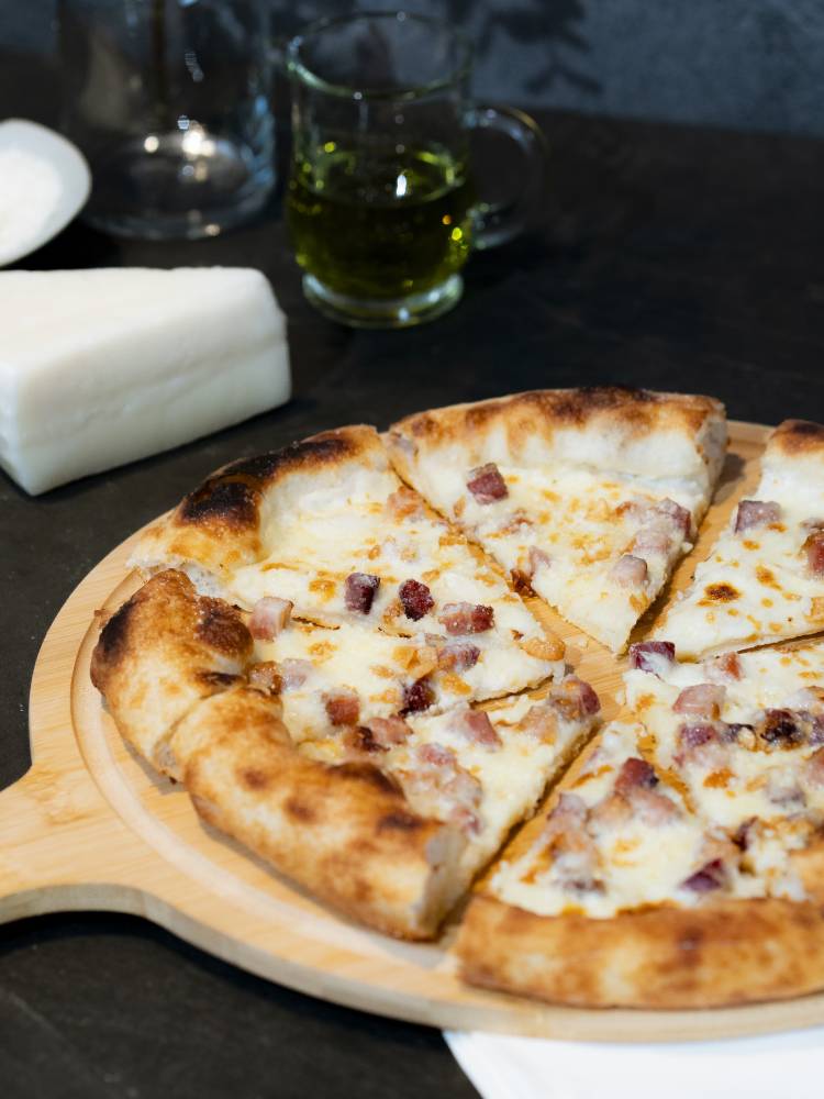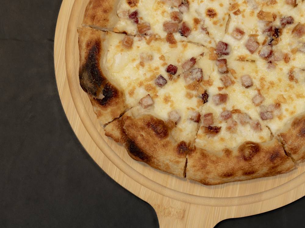 Good for sharing is the Garlic Bacon Pizza, made using hand-tossed dough with garlic cream sauce, three kinds of cheese and miso bacon.