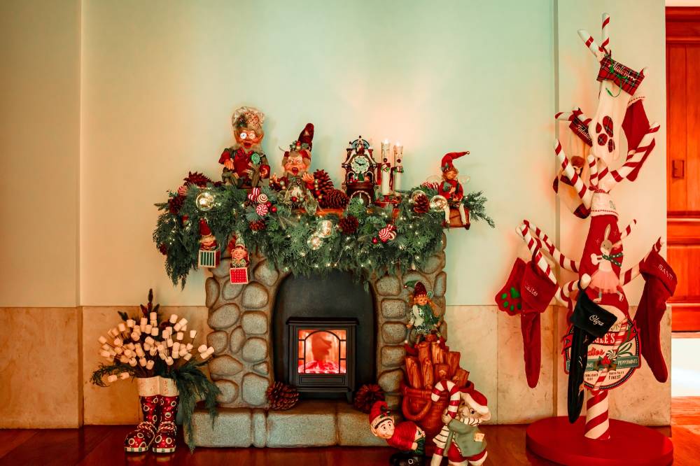 Standing in Maite’s home during the holidays feels like stepping into a memory that somehow belongs to you, too. A Santa mailbox greets you at the entrance—playful, inviting, and hopeful. Above it hangs a garland of etched wooden names, representing each family member and added to with every new arrival. A battery-operated fireplace glows, whimsical marshmallow ornaments sit nearby, and delightful Mark Roberts figures peek out from corners as if sharing inside jokes with anyone willing to notice.