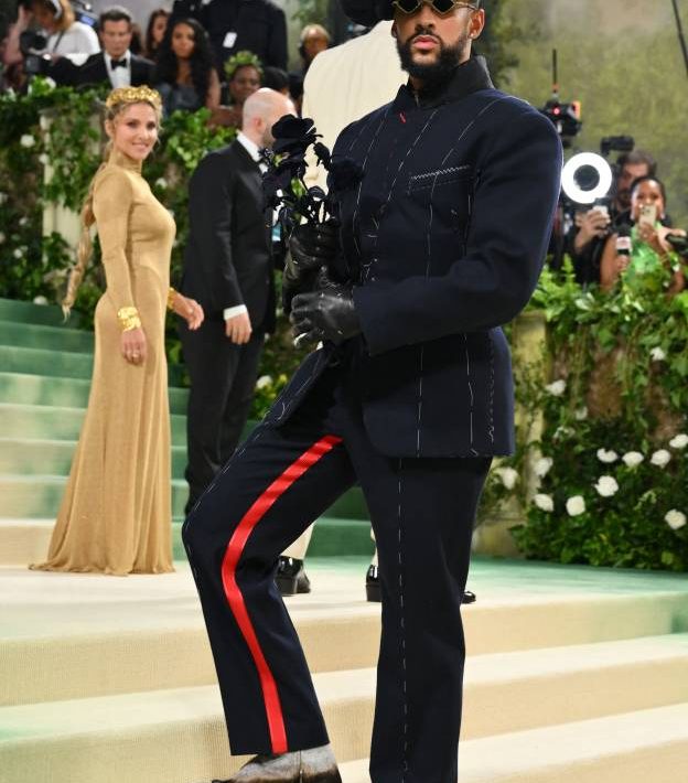 TOPSHOT - Puerto Rican singer Bad Bunny arrives for the 2024 Met Gala at the Metropolitan Museum of Art on May 6, 2024, in New York. The Gala raises money for the Metropolitan Museum of Art's Costume Institute. The Gala's 2024 theme is “Sleeping Beauties: Reawakening Fashion.” (Photo by Angela Weiss / AFP)