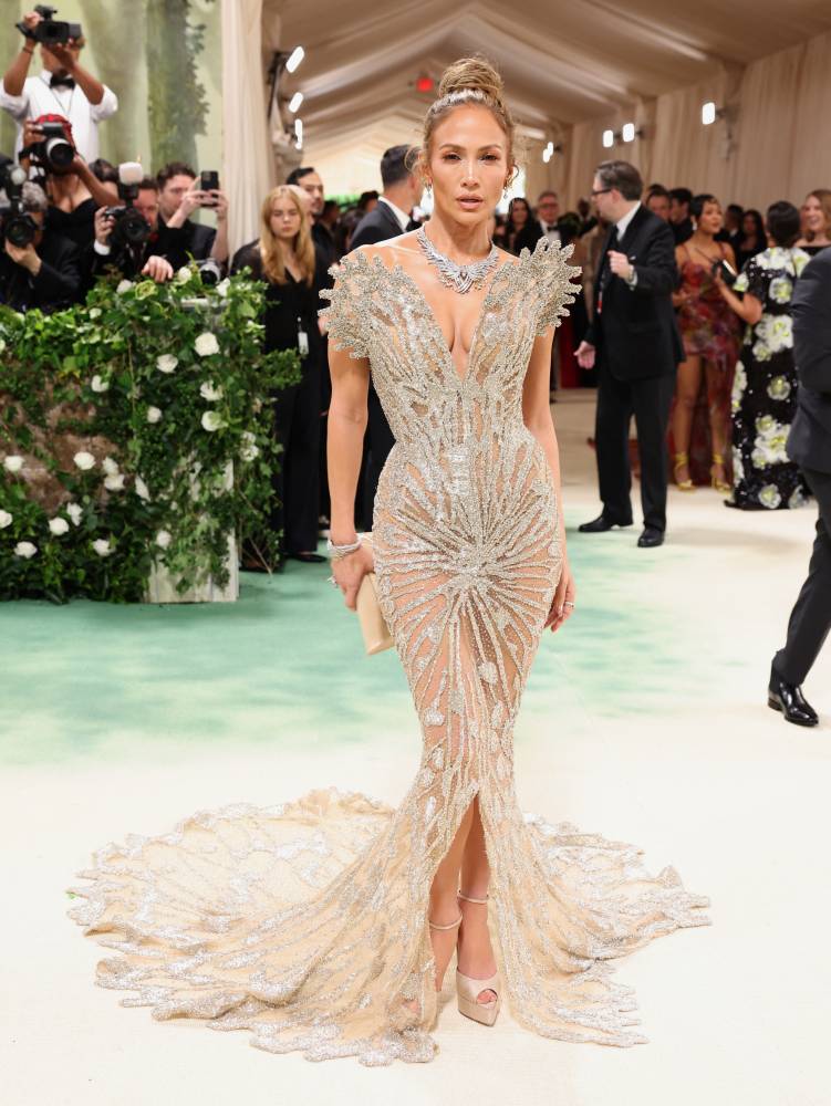 Jennifer Lopez poses at the Met Gala, an annual fundraising gala held for the benefit of the Metropolitan Museum of Art's Costume Institute with this year's theme 'Sleeping Beauties: Reawakening Fashion' in New York City, New York, U.S., May 6, 2024. REUTERS/Andrew Kelly