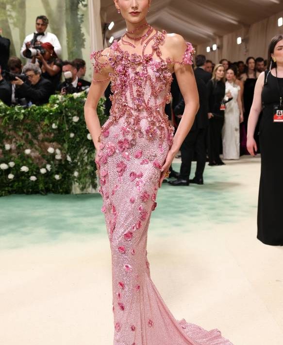 Karlie Kloss poses at the Met Gala, an annual fundraising gala held for the benefit of the Metropolitan Museum of Art's Costume Institute with this year's theme 'Sleeping Beauties: Reawakening Fashion' in New York City, New York, U.S., May 6, 2024. REUTERS/Andrew Kelly