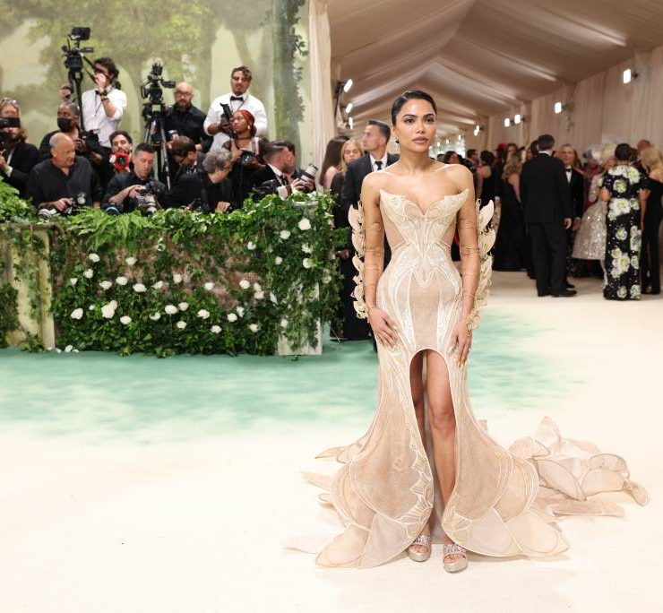 South African singer Tyla’s strapless Balmain gown evoking the sands of time—right down to the hourglass purse—was sculpted so tightly to her body that she had to be carried up the steps at the Metropolitan Museum of Art.