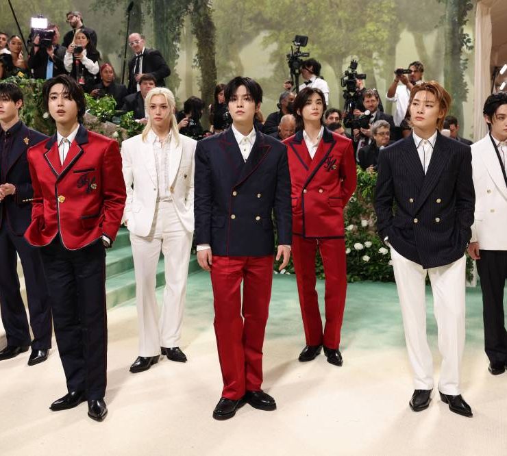 Changbin, Lee Know, I.N, Hyunjin, Seungmin, Felix and Bang Chan of Stray Kids pose at the Met Gala, an annual fundraising gala held for the benefit of the Metropolitan Museum of Art's Costume Institute with this year's theme 'Sleeping Beauties: Reawakening Fashion' in New York City, New York, U.S., May 6, 2024. REUTERS/Andrew Kelly