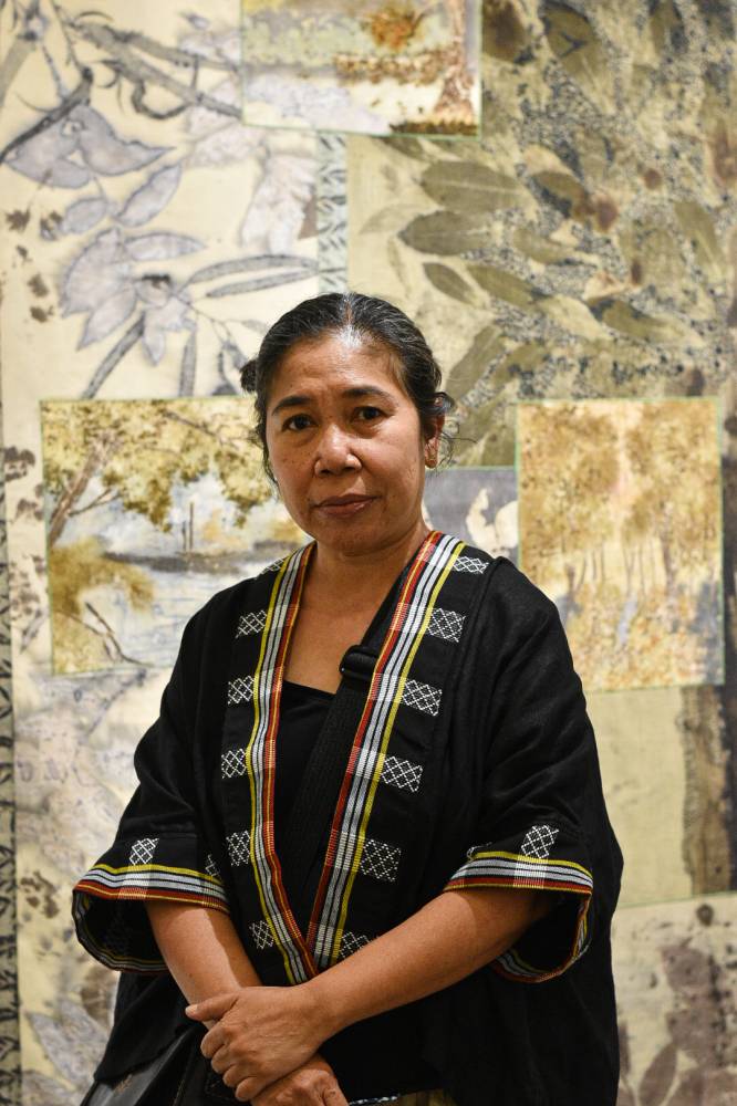 “We spent six months on this project, with 11 of us working on embroidery, one on ecoprinting, and one on carpentry and installation,” she adds. “I’m not claiming that we have fully mastered the process of ecoprinting, but we are getting there… We used the top half of Mt. Maculot’s silhouette as a reference for the work. It should have been the entire silhouette, but completing it would have taken us two years.”