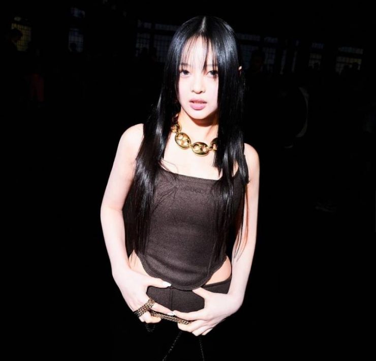 Hanni of NewJeans was a front-row favorite at Gucci, alongside Salma Hayek and Solange Knowles. She took over the internet in her brown ensemble that showed off the Marina chain on her neck, red Jackie bag on her arm and pointy heels.