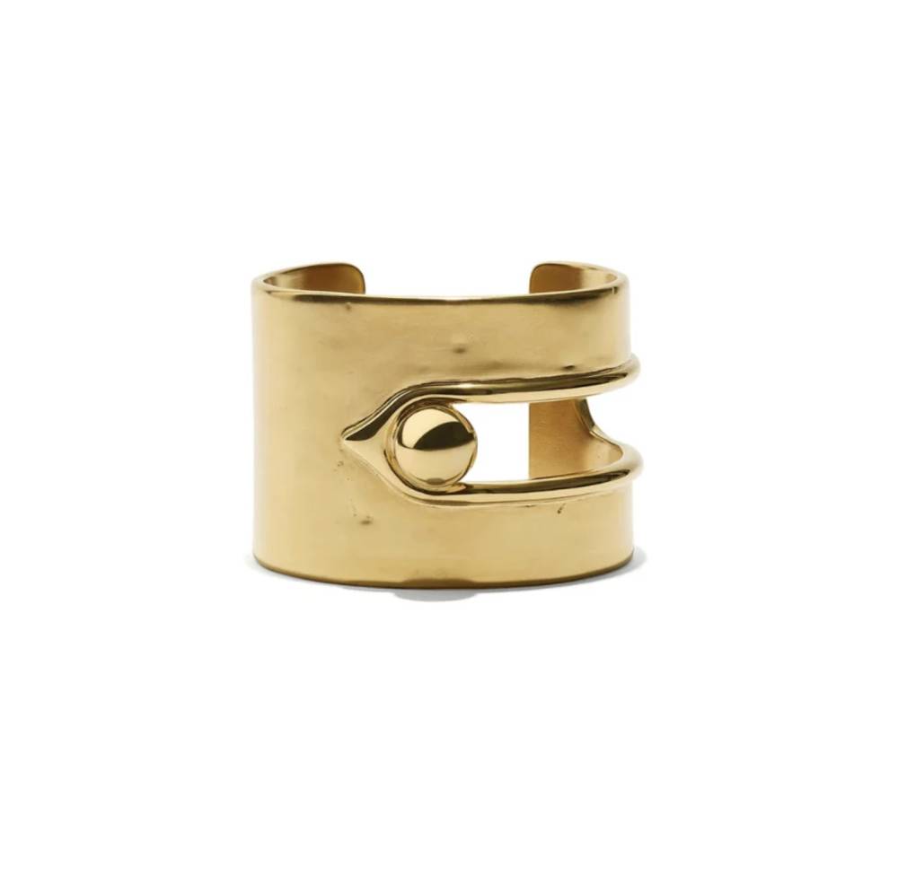 The Boucle Cuff from French goldsmith Goossens Paris is a masterclass in craftsmanship. Made from brass soaked in a 24-carat gold bath, its sculptural form leans toward a wearable art piece that looks modern yet timeless.