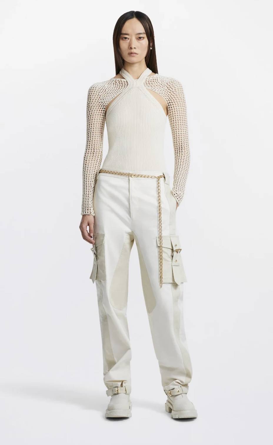 Equal parts crochet and tank, Dion Lee’s Stirrup Crochet Top in bone is a great transitional piece. Breezy yet polished, it’s the ideal piece for in-between weather, when you’re darting in and out of air-conditioned holiday parties, or just looking for something easy yet elevated.