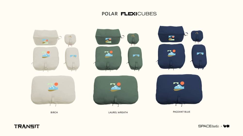 “Transit” is the latest collection from Spacetastic in collaboration with Filipino graphic designer Vanilla Arucan. Inspired by shifting seasons, the “Solar” and “Polar” designs appear on Flexicubes. Featuring a bento-box-style packing system built for compression and expansion, each handcrafted piece is made in the Philippines using premium materials.