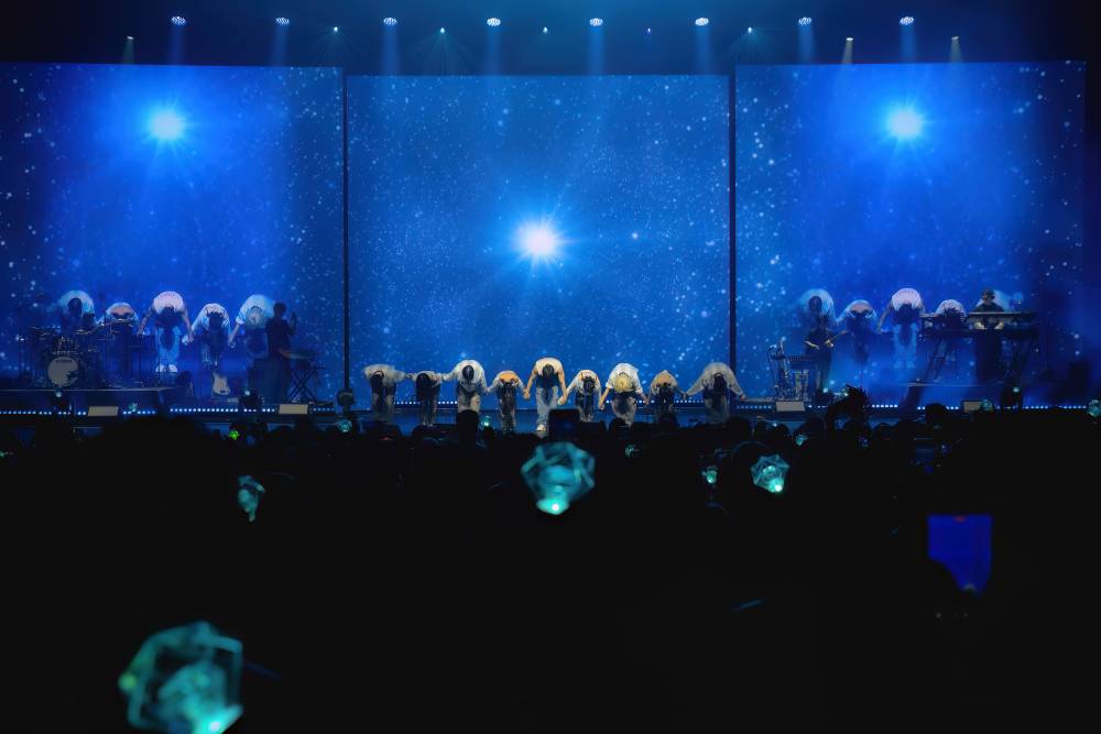 He took note and gratefully praised them once again. The fans’ love was impossible to miss. Multiple fan projects caught his eye at the venue, including a hand banner and the sea of blue pompoms that waved enthusiastically as he performed. It was a coordinated display of affection that clearly moved him.